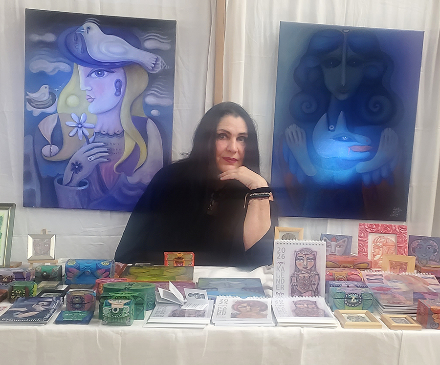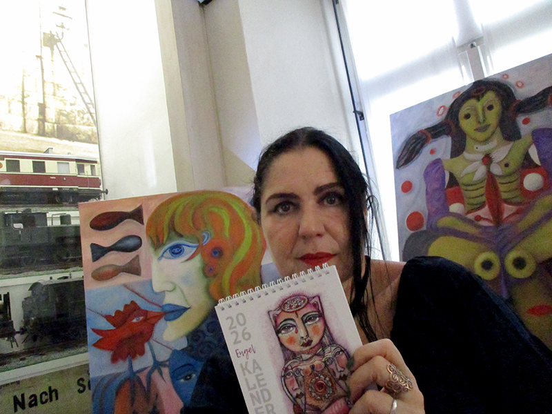 Ölgemälde im Hintergrund: „Erinnerungsengel“, 50 x 60 cm (2022)