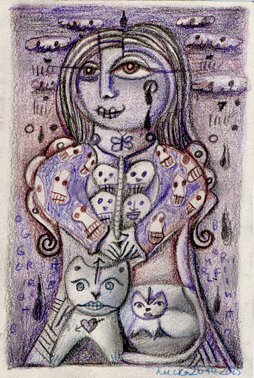 Alle Jahre wieder findet der Kleinkunstmarkt in Schönwald statt. Kann sein, dass ich das nächste Mal nicht dabei bin. Im Moment kann ich das alles nicht mehr. Aber heute habe ich es wieder geschafft mit dem Gedankengemurmel klarzukommen. Es ist alles temperatur- und gefühlskalt geworden. Die Zeit vor Corona war einfach anders. Diese kommt nie mehr zurück. Die Buntstiftzeichnung ist 7 x 8 cm groß.