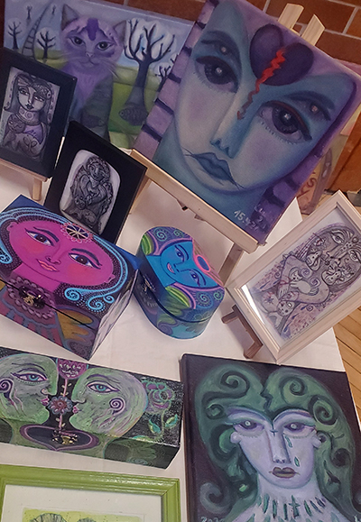 Es gibt wieder 100 Miniaturen für die Kunstgalerie “ Kunstautomat“ Die keinen Bilder sind 5 x 8 cm groß. (mixed media): Infos unter http://www.kunstautomaten.com
