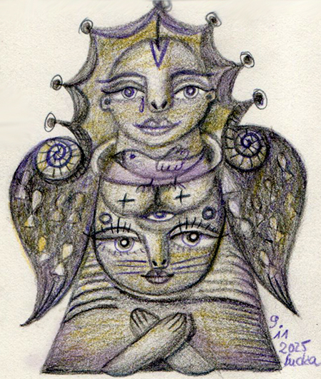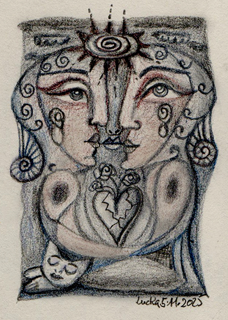 Heute musste ich zwei Stunden im Wartezimmer eines Arztes warten. Glücklicherweise hatte ich meinen kleinen Zeichenblock dabei. So entstand eine Minizeichnung “ Herz gebrochen“10 x 12 cm, 5. November 2025)