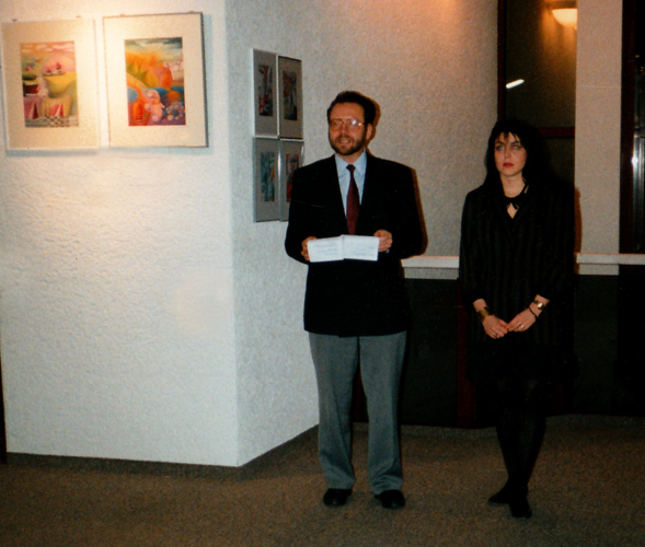 Marion Lucka: Meine zweite Ausstellung im Landratsamt Wunsiedel "Eindrücke" (1990) Hier mit Dr. Peter Seißer, ehemaliger Landrat