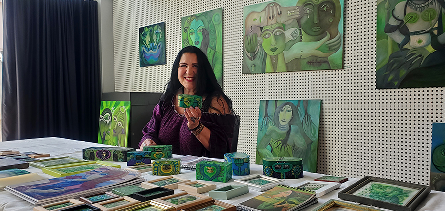 #Marionlucka #miniboxes #woodenbox #originalacryli #Marionlucka #miniboxes #woodenbox #originalacrylicpainting #colorful #artgalerie #artforpresent #artforder #artpresent #abstractfaces #surrealportrait #naiveart #womanportrait #womanart #womanartist #greenbox  #couple #catsofinstagram #catface  #abstractcatface #oktober2025 #differtmotifs #differtentsize #box  #handpaintedbox #colorfulface
