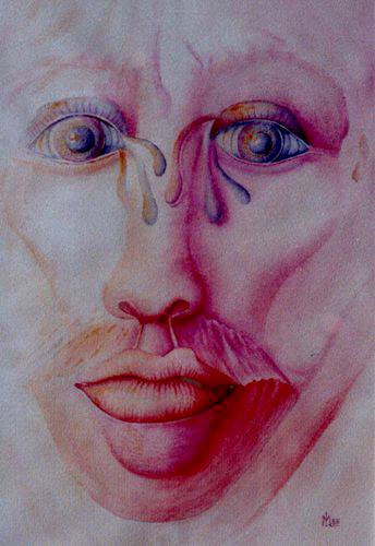 Marion Lucka: Fischgesicht, Aquarell, 30 x 40 cm (1990)