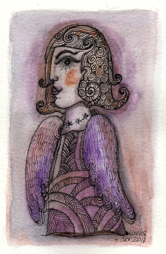 Marion Lucka: Aquarell" Engel im Kopf" 10 x 15 cm (2013)