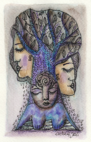 Marion Lucka: Aquarell " Baumengel" 10 x 15 cm (2018)