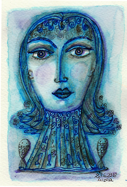 Marion Lucka: Aquarell " Fischfrau" 10 x 15 cm (26. März 2018)