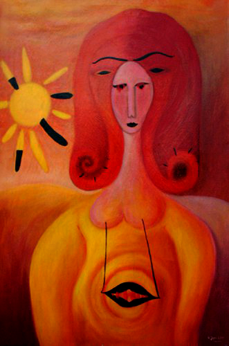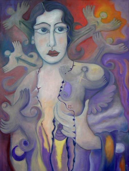 Im Grunde mache ich mir bewusst darüber keine Gedanken. Ich fange einfach an und bin oft überrascht, wer mich zum Schluss ansieht. Es kommt, wie es es kommt – zuviele Überlegungen sind da nicht nötig. Vielleicht eignen sich Frauen besser um seelische Zustände auszudrücken? Wer weiß? Männer sind ja sowieso das Wichtigste auf der Welt, warum sollte man sie dann noch wichtiger auf der Leinwand machen? Früher war es schon fast eine Strafe, wenn man als Mädchen auf die Welt kam, besonders als Erstgeborene in einer Familie und auf dem Dorf. Das merkt man ein ganzes Leben lang. Ich habe mich jedenfalls wahnsinnig gefreut ein weibliches Wesen auf die Welt zu bringen.