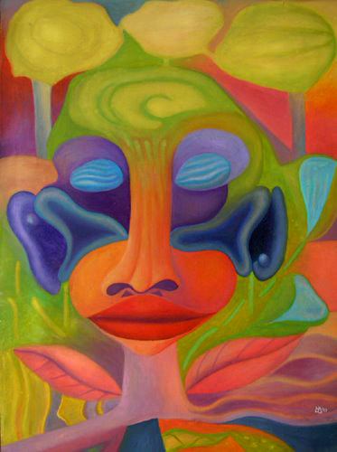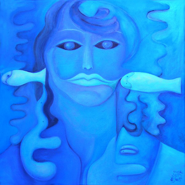 Irgendwann wurde ich gefragt, warum ich keine Männer male? Mir war das bis zu dem Zeitpunkt gar nicht bewusst. Wahrscheinlich habe ich schon mal versucht einen Mann auf die Leinwand zu bannen – zumindest ansatzweise. Aber es wurden immer wieder weiblich aussehende Wesen, die aber durchaus auch männliche Züge haben können. Oder es sind Mischwesen? Aber beim Bearbeiten der Seiten habe ich schon drei bis vier männlich anmutende Gestalten gefunden. Es gibt sie also doch die männlich Bilder. Man muss nur lange genug suchen.