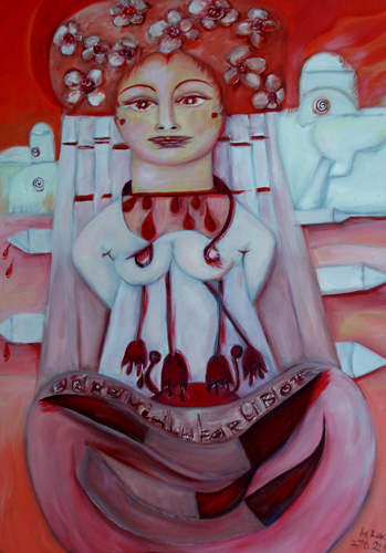 Im Grunde mache ich mir bewusst darüber keine Gedanken. Ich fange einfach an und bin oft überrascht, wer mich zum Schluss ansieht. Es kommt, wie es es kommt – zuviele Überlegungen sind da nicht nötig. Vielleicht eignen sich Frauen besser um seelische Zustände auszudrücken? Wer weiß? Männer sind ja sowieso das Wichtigste auf der Welt, warum sollte man sie dann noch wichtiger auf der Leinwand machen? Früher war es schon fast eine Strafe, wenn man als Mädchen auf die Welt kam, besonders als Erstgeborene in einer Familie und auf dem Dorf. Das merkt man ein ganzes Leben lang. Ich habe mich jedenfalls wahnsinnig gefreut ein weibliches Wesen auf die Welt zu bringen.