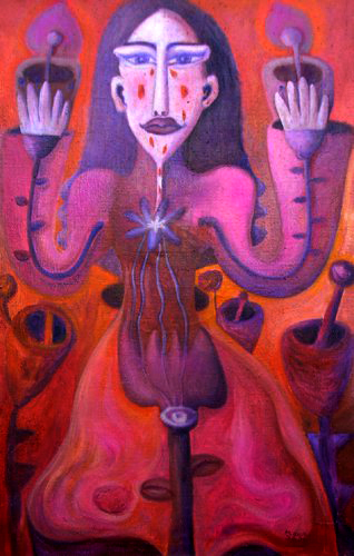 Im Grunde mache ich mir bewusst darüber keine Gedanken. Ich fange einfach an und bin oft überrascht, wer mich zum Schluss ansieht. Es kommt, wie es es kommt – zuviele Überlegungen sind da nicht nötig. Vielleicht eignen sich Frauen besser um seelische Zustände auszudrücken? Wer weiß? Männer sind ja sowieso das Wichtigste auf der Welt, warum sollte man sie dann noch wichtiger auf der Leinwand machen? Früher war es schon fast eine Strafe, wenn man als Mädchen auf die Welt kam, besonders als Erstgeborene in einer Familie und auf dem Dorf. Das merkt man ein ganzes Leben lang. Ich habe mich jedenfalls wahnsinnig gefreut ein weibliches Wesen auf die Welt zu bringen.